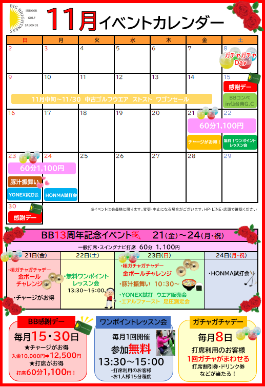 🎊ビッグブライトネス13周年イベント開催11月21日~