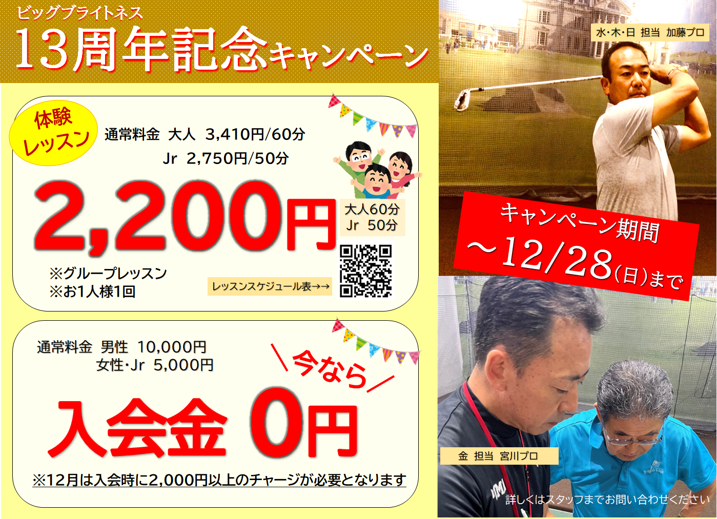 今まで、『屋内練習場ビッグブライトネスに通ってみたいけれど、あまり来られないから年会費払うのはちょっとなあ🤔』と思っていた方いませんか❓❓
