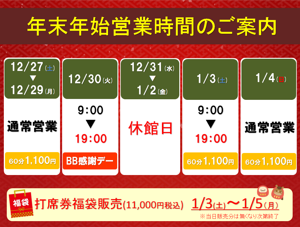 お得な打席10回券福袋 12/8~予約開始🧧
