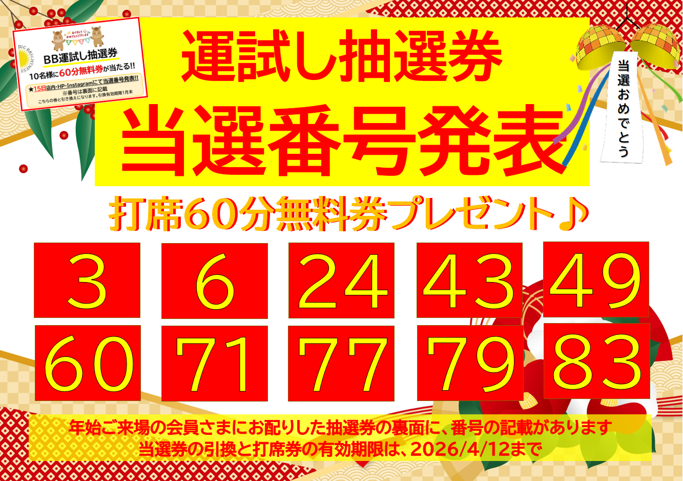 🎉運試し抽選 当選番号発表🎉