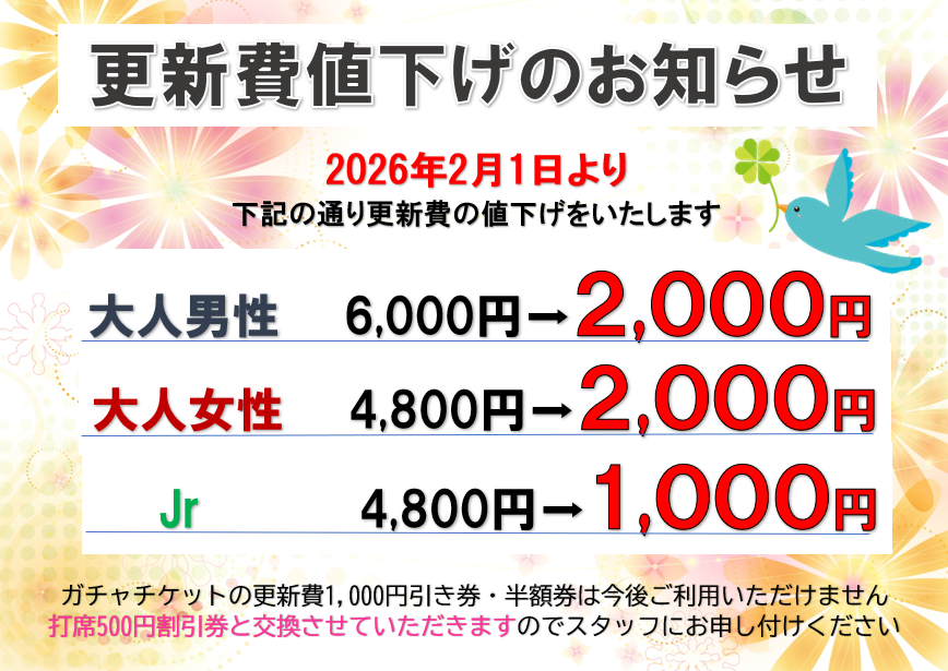 更新費値下げのお知らせ